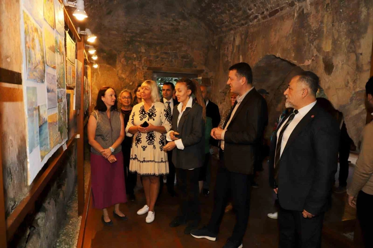 Ukrayna’nın farklı şehirlerinden bir grup kadın ressam tarafından hazırlanan “Ukraynalı Kadın Ressamların Gözünden Alanya” sergisi, Kızılkule yanındaki tarihi sarnıçta açıldı.