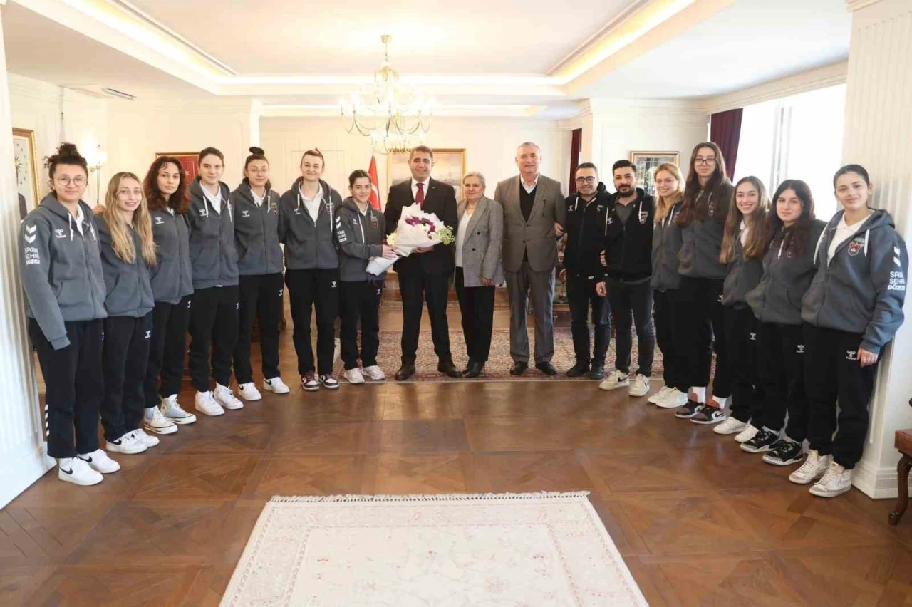 DÜZCE(İHA) – Türkiye Basketbol Federasyonu (TBF) Kadınlar Bölgesel Liginde mücadele eden ve çeyrek finale yükselen Düzce Atletik Spor Kulübü sporcularını Vali Selçuk Aslan ağırladı.