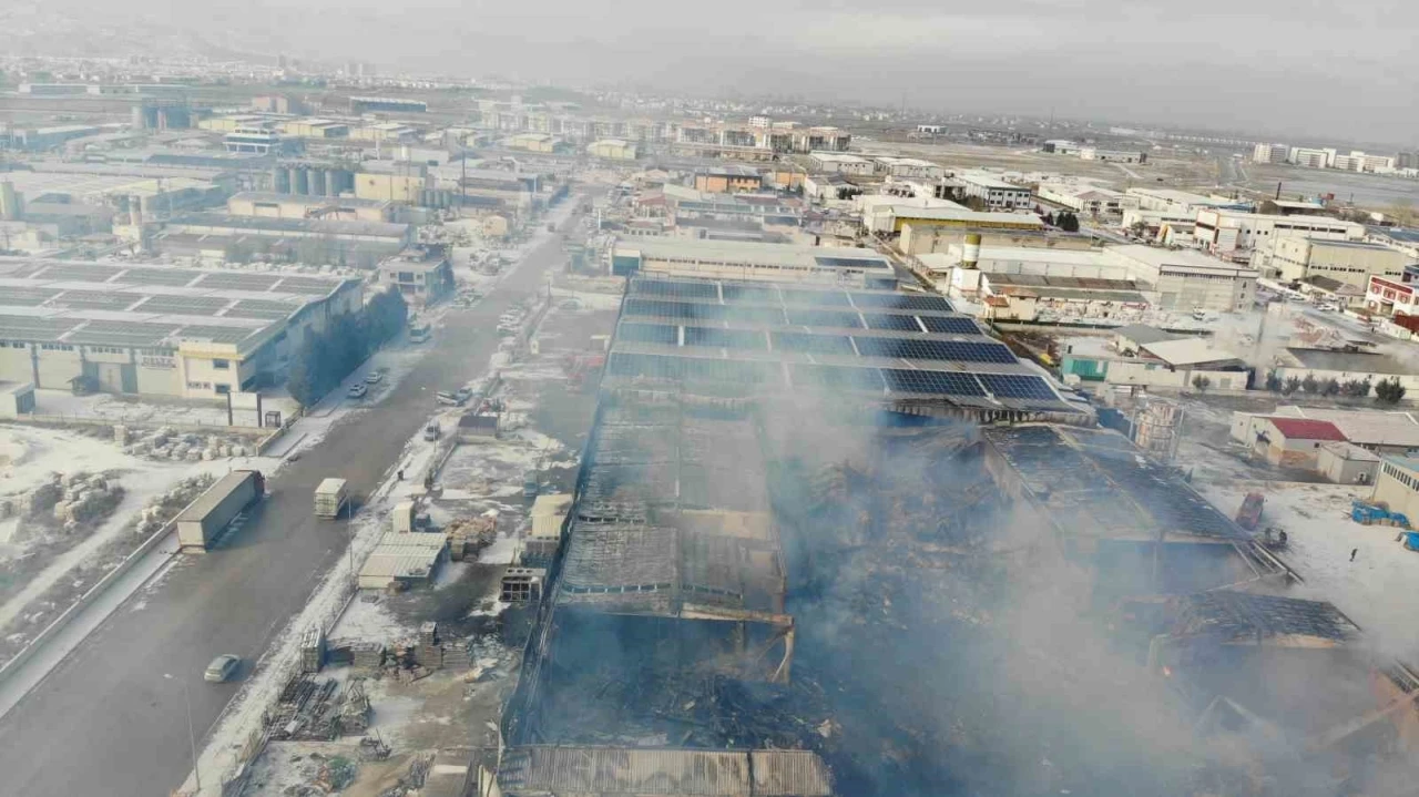 Yanan fabrikadan dumanlar yükselmeye devam diyor