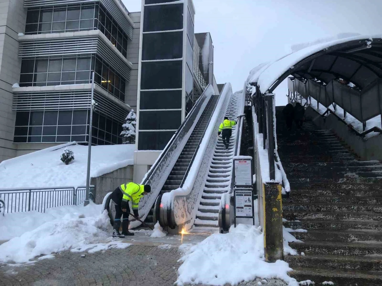 Kocaeli’de etkili olan kar yağışı ile birlikte alarm durumuna geçen büyükşehir belediyesi, tüm yolları açık hale getirirken, yayaların güvenliğini sağlamak için de tuzlama ve kaldırım temizleme çalışmasını sürdürüyor. Üst geçitler başta olmak üzere aile sağlığı merkezleri, otobüs durakları, kamu binalarının önü, ibadethaneler ve ilçelerin muhtelif noktalarında kar yağışının olumsuz etkilerine karşı temizlik yapan ekipler, ulaşımının en önemli noktalarında güvenli geçişi sağlamak için yoğun çaba sarf ediyor. Yapılan çalışmalarla il genelinde trafik akışında önemli sorun yaşanmazken, park ve bahçeler dairesi başkanlığına bağlı ekipler, yaya hareketliliğinin yoğun olduğu alt ve üst geçitler ile meydanlarda kar temizliği ve tuzlama çalışması gerçekleştiriyor. Özellikle üst geçitlerin merdivenlerinde biriken karın gece ayaz yapmasıyla oluşan buzlanmalar, buz çözücü solüsyon dökülerek temizleniyor.