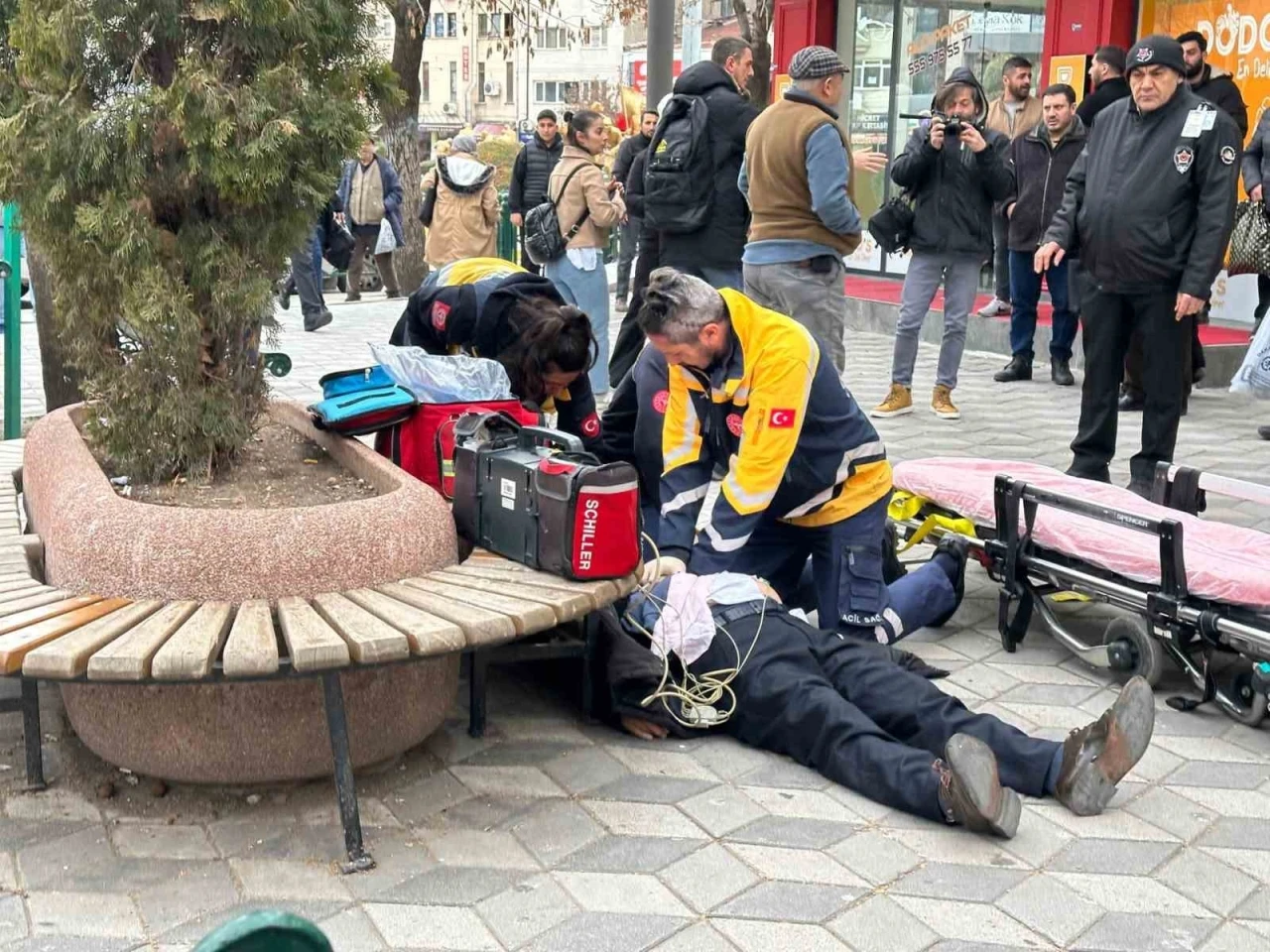 Eskişehir’de aniden yere yığılan 76 yaşındaki yaşlı adam, olay anında orada olan doktor ve 112 Acil Sağlık ekiplerinin kalp masajı ile hayata döndürülerek hastaneye kaldırıldı.