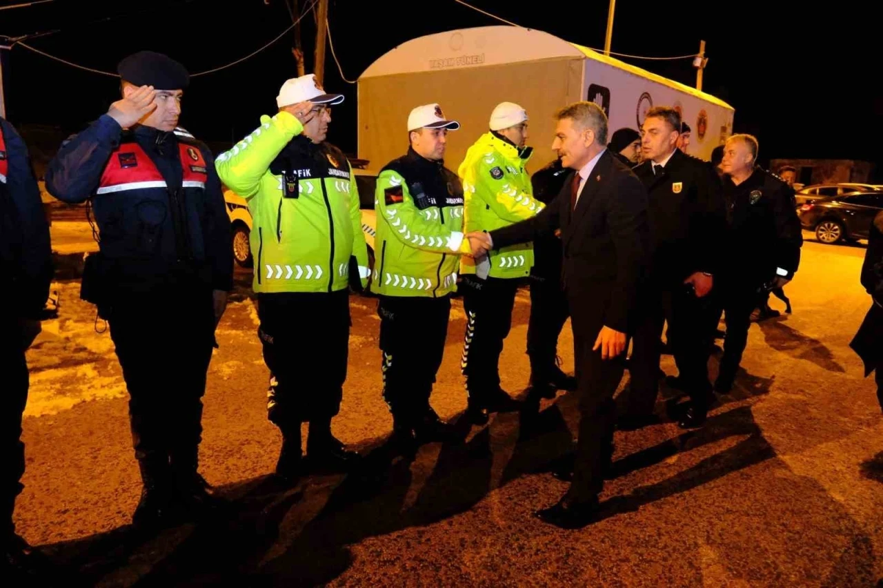“Yılbaşı akşamında Muşlubelen yol kontrolü uygulama noktamızda emniyet ve jandarma teşkilatımızla beraberiz. Sağ olsunlar teşkilatlarımız yedi gün yirmi dört saat esasına göre durmaksızın Yozgat’ımızın huzuru için çalışmalarına devam ediyorlar. Sadece burada değil ilimizin birçok noktasında hem trafik, hem emniyet, hem asayiş tedbirleri alınmış vaziyette. Bunun yanı sıra sağlık teşkilatımız, AFAD’ımız, İtfaiye teşkilatlarımız, 112 teşkilatlarımız durmaksızın görevlerine devam ediyorlar. Bizler de burada il jandarma komutanımız, emniyet müdürümüz ve arkadaşlar birlikte görevi başında olan arkadaşlarımızın yeni yıllarını kutlamak üzere buradayız. Tabii bir yılı hep beraber tamamlamış vaziyetteyiz. 2024 yılı gerek komşu coğrafyalarda, gerekse zaman zaman ülkemiz içerisinde zaman acı olaylar yaşadığımız ama zaman zaman da mutlulukla, huzur içerisinde geçirdiğimiz günleri barındıran bir yıl oldu. İnşallah 2025 yılı hem ilimiz, hem ülkemiz hem de dünya coğrafyası için huzurla gelen, huzur getiren güzelliklerle, sağlıkla, mutlulukla gelip geçen bir yıl olur.”