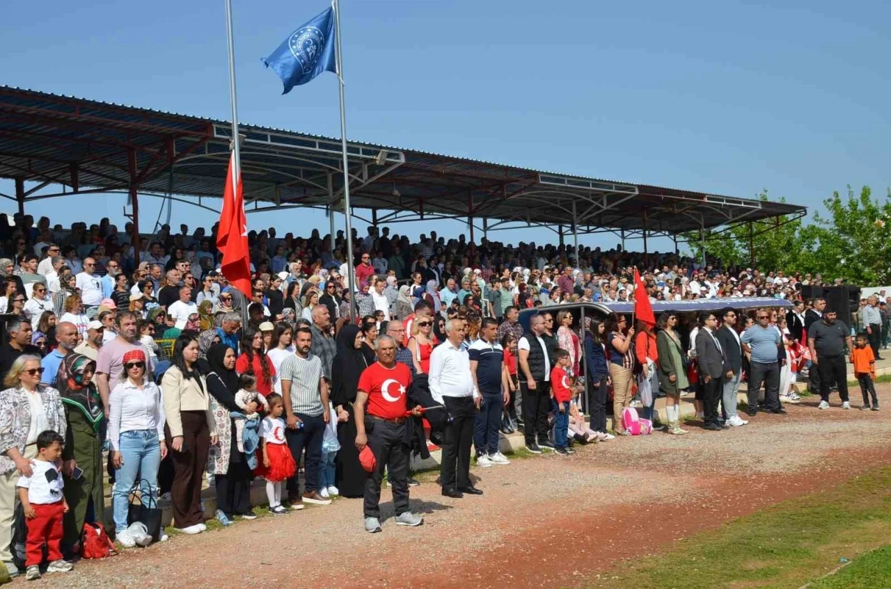 Çelenk sunma töreninin ardından resmi kutlamalar, Didim Atatürk Stadı’nda devam etti. Geniş katılımın olduğu törene ilçe protokol üyeleri, kamu kurumlarının temsilcileri, siyasi parti yöneticileri ve çok sayıda Didimli vatandaş katıldı. Kutlamalar, saygı duruşu ve İstiklal Marşı ile başladı. Ardından Didim Kaymakamı Can Kazım Kuruca, Garnizon Komutanı Albay Erkut Arslan ve Belediye Başkanı Hatice Gençay, öğrenciler ve halkı selamladı. Günün anlam ve önemine ilişkin konuşmayı İlçe Milli Eğitim Müdürü Şakir Sait Üstündağ gerçekleştirdi. Üstündağ konuşmasında "23 Nisan Ulusal Egemenlik ve Çocuk Bayramı hepimize kutlu olsun. Hepiniz hoş geldiniz. Gazi Mustafa Kemal, Milli Kurtuluş savaşını başlatmak için 19 Mayıs 1919’da Samsun’a ulaştı. Samsun’da başlayan mücadelenin devamında Amasya, Erzurum ve Sivas’ta yapılan kongrelerle ülkenin kurtuluşu için yine ülke evlatlarının savaşması gerektiği fikri pekişti. Ulusun egemenliği, millet eliyle gerçekleşmeliydi. Atatürk, ’Tek egemenlik vardır, o da ulusal egemenlik’ diyerek Cumhuriyet’e vurgu yapmıştı. Ankara’da 23 Nisan 1920 günü toplanan ve ülkenin her tarafından seçilerek gelen temsilciler ülkemizin yokluk ve yoksulluk döneminde böylece çalışmaya başladı. 23 Nisan 1920 ruhu tüm mazlum milletlere örnek olmuştur. Bununla birlikte Atatürk tarafından tüm dünya çocuklarına armağan edilen bir gündür. Dünyada kutlanan ilk Çocuk bayramıdır. Bu duygu ve düşüncelerle başta Gazi Mustafa Kemal ve mücadele arkadaşlarını, şehitlerimizi, gazilerimizi saygı, şükran ve minnetle anıyor; başta bugünü anlamlandıran çocuklarımızın, ülkemizin, milletimizin ve tüm dünya çocuklarının 23 Nisan Ulusal Egemenlik ve Çocuk Bayramını en içten dileklerimle kutluyor, hepinizi saygıyla selamlıyorum" ifadelerine yer verdi. Konuşmanın ardından öğrenciler günün anlam ve önemini anlatan şiirler okudu. Sonrasında sahne alan öğrencilerin hazırladığı gösteriler büyük beğeni topladı. Törenin sonunda ise 23 Nisan kapsamında düzenlenen resim yarışmalarında dereceye giren öğrencilere protokol üyeleri tarafından ödülleri takdim edildi.