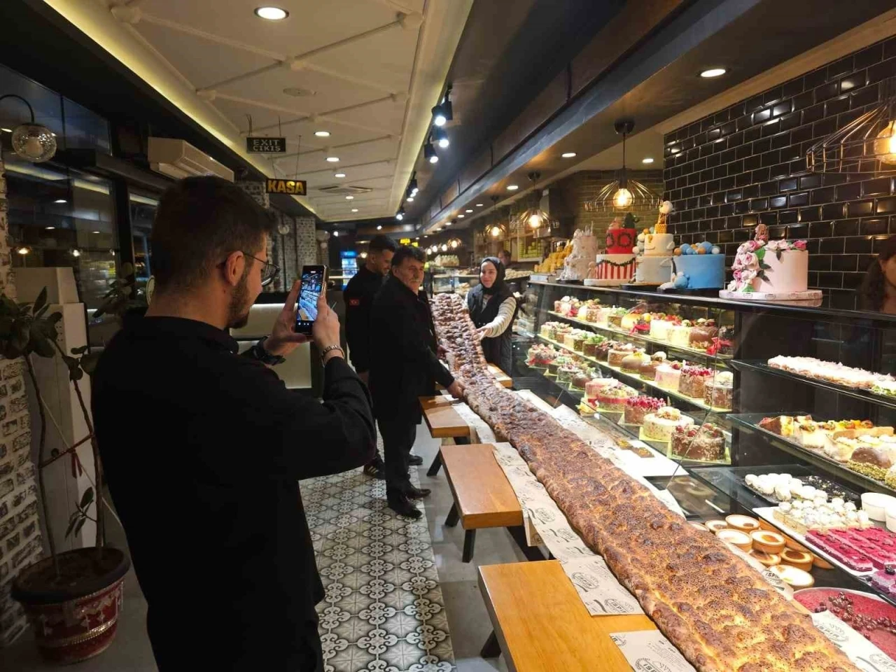 Uzun pideyi görenler ise bu anın fotoğrafını çekerek şaşırdılar.
