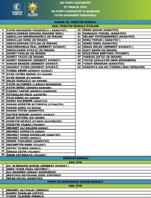 İŞTE FEDAİOĞLU’NUN YENİ YÖNETİM LİSTESİ: