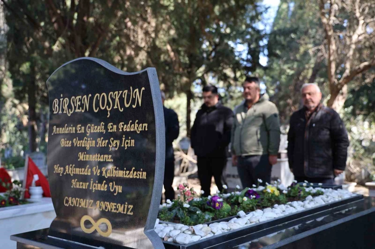 Kahramanmaraş merkezli depremde Kozan’da yakınlarından haber anlamayıp ikinci depremde kalp krizi geçirerek hayatını kaybeden Birsen Coşkun ve Adana’da yıkılan Alpargün Apartmanında hayatını kaybeden mühendis Bekir Coşkun, öğretmen eşi Azize Dağlı Coşkun ve oğulları ziraat mühendisi Tahsin Can Coşkun yakınları tarafından kabristanda dualarla anıldı.