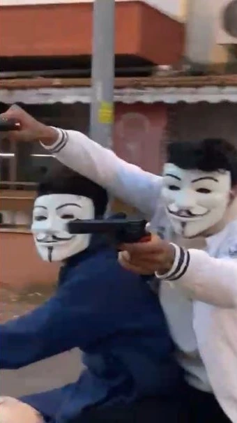 Serik ilçesi Merkez Mahallesi Salı Pazarı civarında akşam saatlerinde, motosikletle seyir halindeyken yüzlerinde ünlü hacker grubu Anonymous’un kullandığı maske takılı 2 genç, ellerindeki silahlarla çevredekilere korku dolu anlar yaşattı. Diğer motosiklet üzerindeki arkadaşları ise o anları cep telefonuyla kaydederek sosyal medyada paylaştı o anlar binlerce tık aldı. maskeli gençlerin silahlarını vatandaşlara doğrultması büyük paniğe yol açtı.