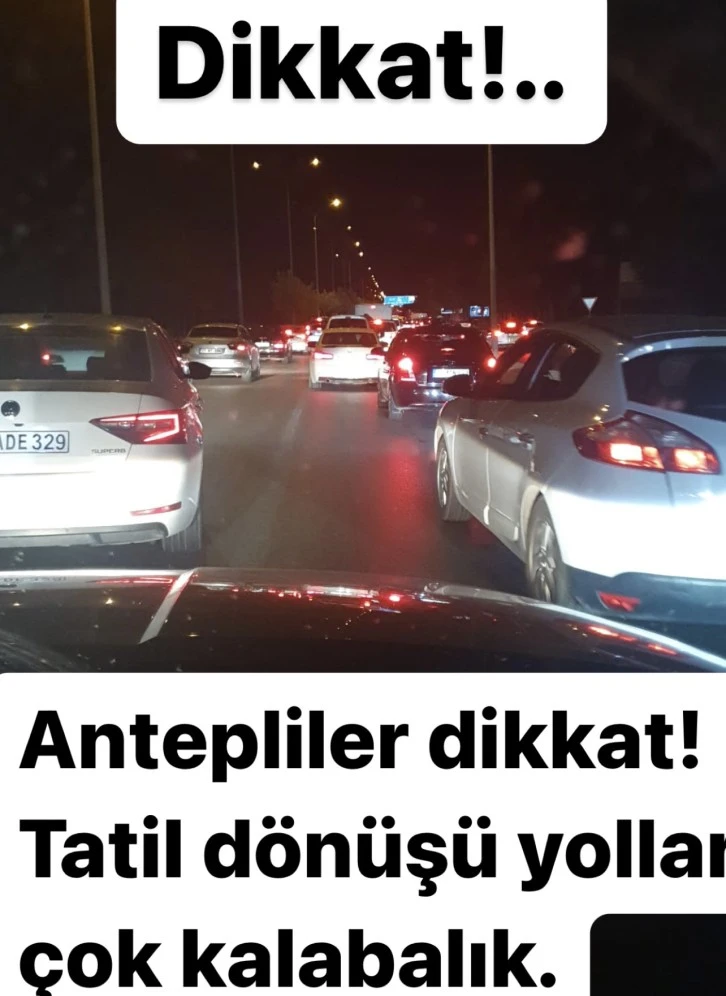 Gaziantep Batı Gişelerinden şehre girmeye çalışan ve uzun kuyruklar oluşturan tatilcilerin durumundan dolayı, zorunlu olmadıkça o bölgeye araçla gidilmemesi gerektiği konusunda uyarıda bulunan yetkililer, Pazar günü yoğunluğun daha da artmasını beklediklerini ifade ettiler.
