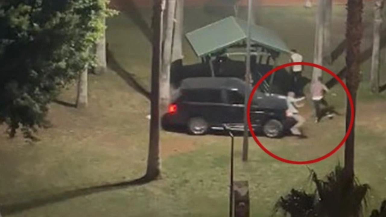 Hızını alamayan öfkeli sürücü, çığlıklar içerisinde parka kaçan grubun peşinden giderek ezmeye çalıştı, gençlerden birine çarparak yere düşürdü. Sonrasında ise iki grup arasında arbede yaşandı, 1 kişi tabanca ile ayağından yaralandı.