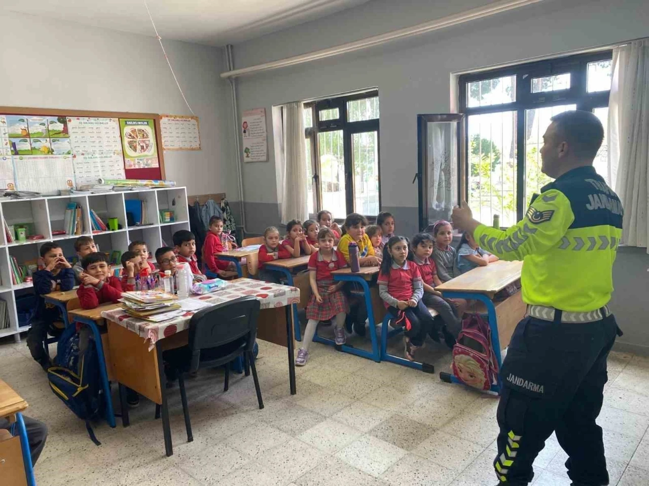 Aydın’ın Buharkent ve Köşk ilçelerinde jandarma ekiplerince 139 öğrenciye trafik eğitimi verildi, okul servisi kuralları anlatıldı.