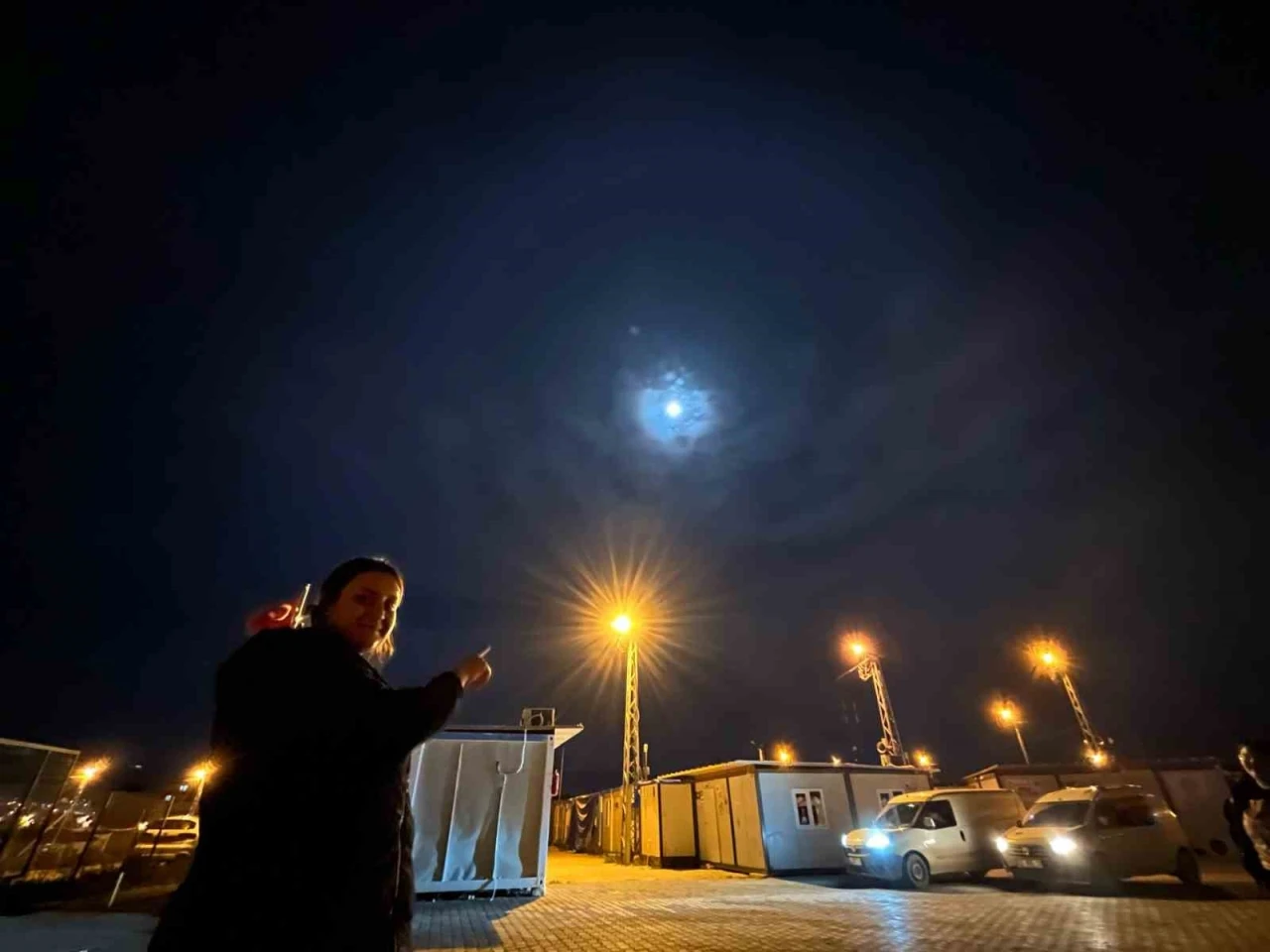 Hatay’da akşam saatlerinde dikkat çeken bir görüntü oluştu. Her geçen dakika kendini belli eden ay halesi ortaya kartpostallık bir görüntü çıkardı. Havanın bulutlu olmasından dolayı zaman zaman görünen hale görünümü vatandaşları hayran bıraktı.