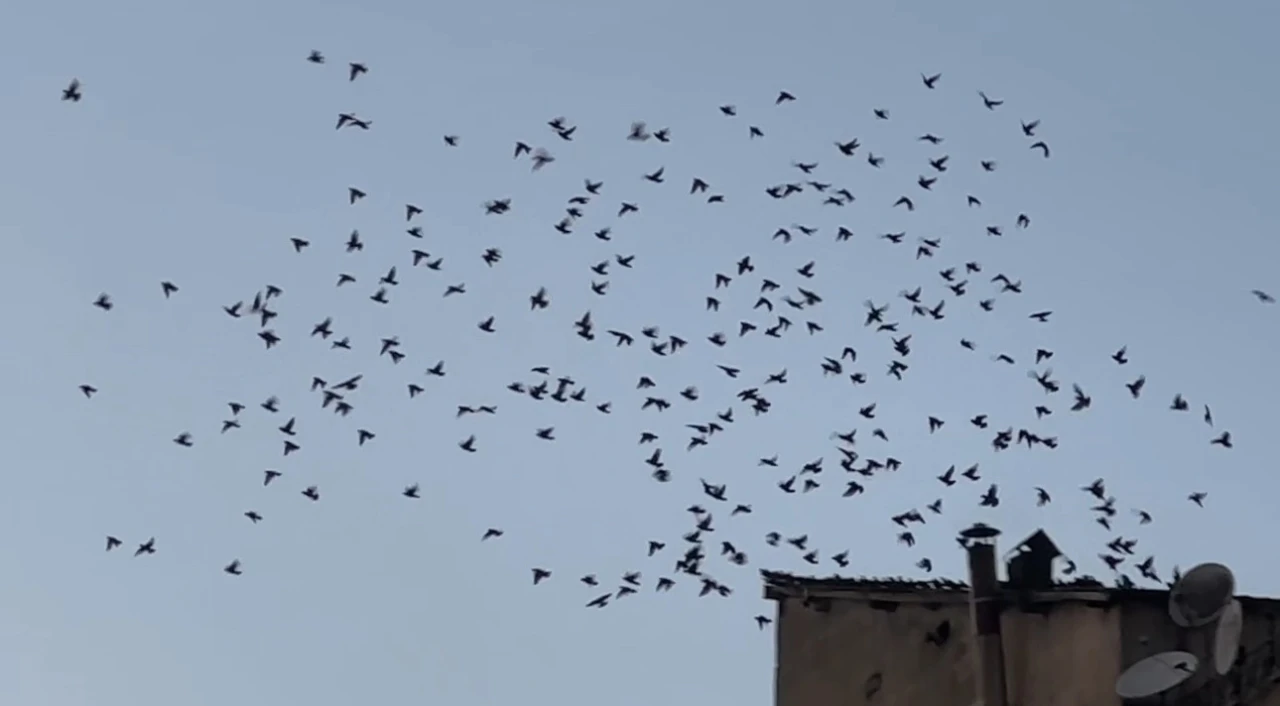 Abdullah Durna isimli vatandaş, "Artık ilkbaharın geldiğini bize söyleyen görüntüler görüyoruz. Şu an Yüksekova semalarında sürü halinde sığırcık kuşlar adeta görsel şölen sunuyor. En ilginç tarafı ise her çatıya sürü halinde konmuşlar. Bizde o güzel manzarayı izliyoruz" dedi.
