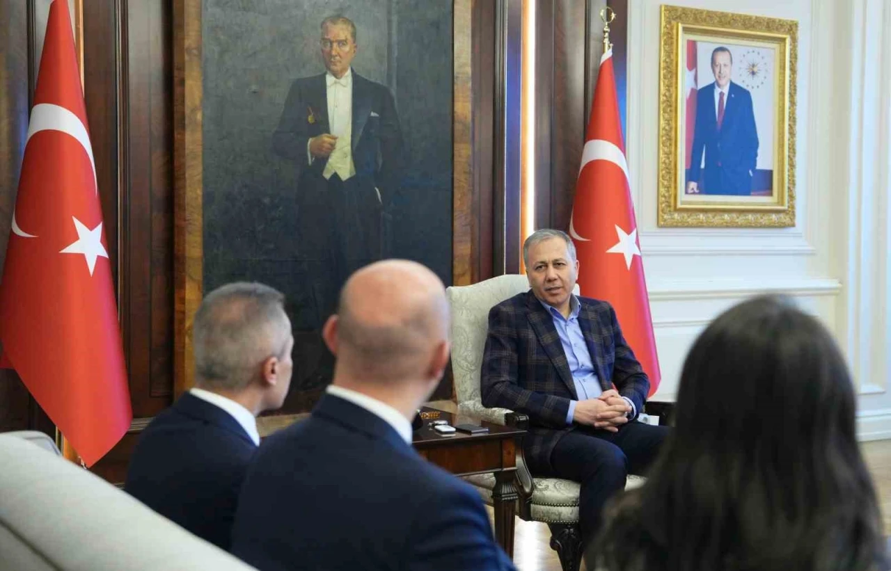 İçişleri Bakanı Ali Yerlikaya, Göç İdaresi Başkanlığı’nın 12. kuruluş yıl dönümünde Göç İdaresi Başkanı Hüseyin Kök ve Başkanlık personelini makamında kabul ederek, Göç İdaresi Başkanlığı’nın 12’nci kuruluş yıl dönümünü kutladı.