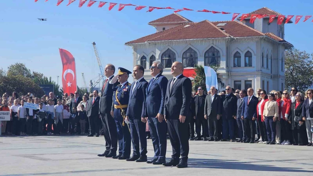 Cumhuriyetin kuruluşunun 101. yılı kutlamaları, Bandırma Cumhuriyet Meydanındaki çelenk töreniyle coşkulu bir şekilde başladı.