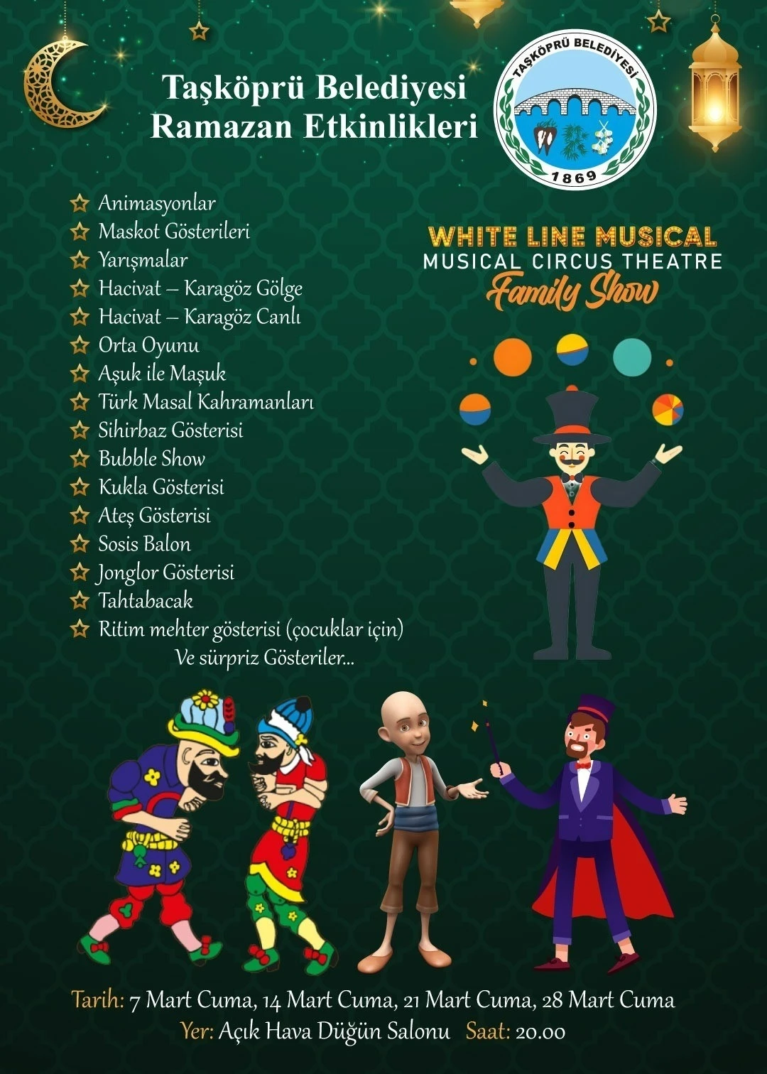 Taşköprü Belediyesi tarafındanaileler ve çocukları için Ramazan ayı dolayısıyla düzenlenen etkinlikler, 7 Mart Cuma günü başlayacak.
