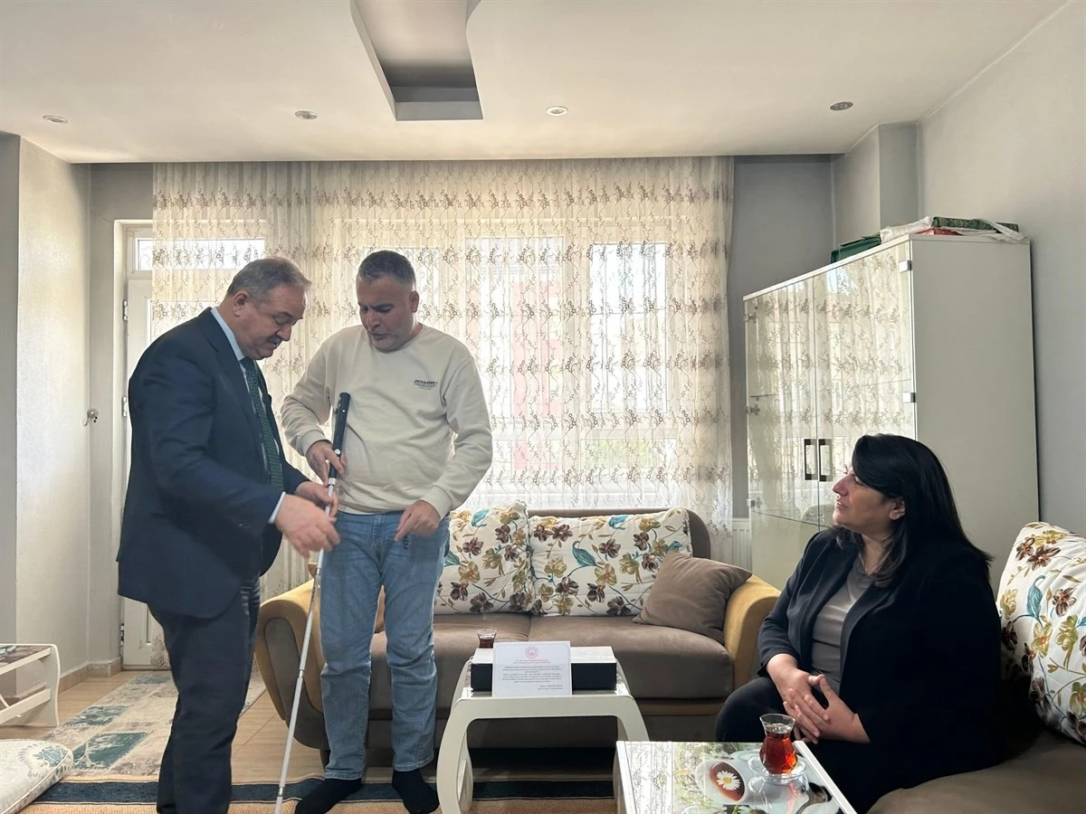 Şırnak’ta katıldığı operasyonda bomba patlaması neticesinde her iki gözünü kaybetmesiyle gazi olan Abdulhakim Öztürk’e Aile ve Sosyal Hizmetler Bakanlığı tarafından gönderilen akıllı baston hediye edildi.