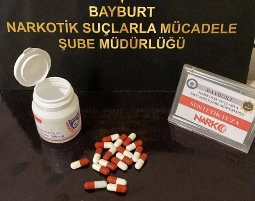 Bayburt İl Emniyet Müdürlüğü Narkotik Suçlarla Mücadele Şube Müdürlüğü ekiplerince şüpheli görülen bir araç durduruldu. Araçtaki şahıslar üzerinde yapılan aramada 18 adet sentetik hap ele geçirildi. Gözaltına alınan şüpheli şahıs hakkında TCK 191 Uyuşturucu veya Uyarıcı Madde Kullanmak suçundan adli işlem yapıldı.