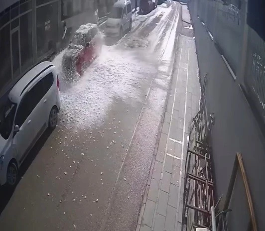 Sabahın erken saatlerinde dondurucu soğukların etkili olduğu Bayburt’ta, öğlen saatlerine doğru hava ısınmaya başlıyor. Güneşin etkisiyle çatılarda biriken kar kütlesi, Şeyhhayran Mahallesi’nde park halinde bulunan aracın üzerine düştü. Esnaf olduğu öğrenilen araç sahibi, duyduğu büyük ses üzerine dışarıya koştu, aracının üzerinin kar yığınıyla kaplandığını gördü. Aracında maddi hasar oluşan araç sahibi, aracını sanayiye götürerek tamir ettirdi.