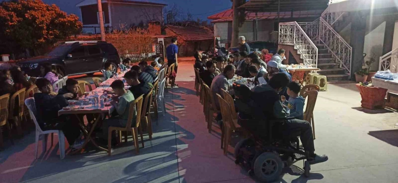 Manisa’nın Sarıgöl ilçesi Bereketli Mahallesi camisinde gençlere ve çocuklara geleneksel iftar yemeği verildi.