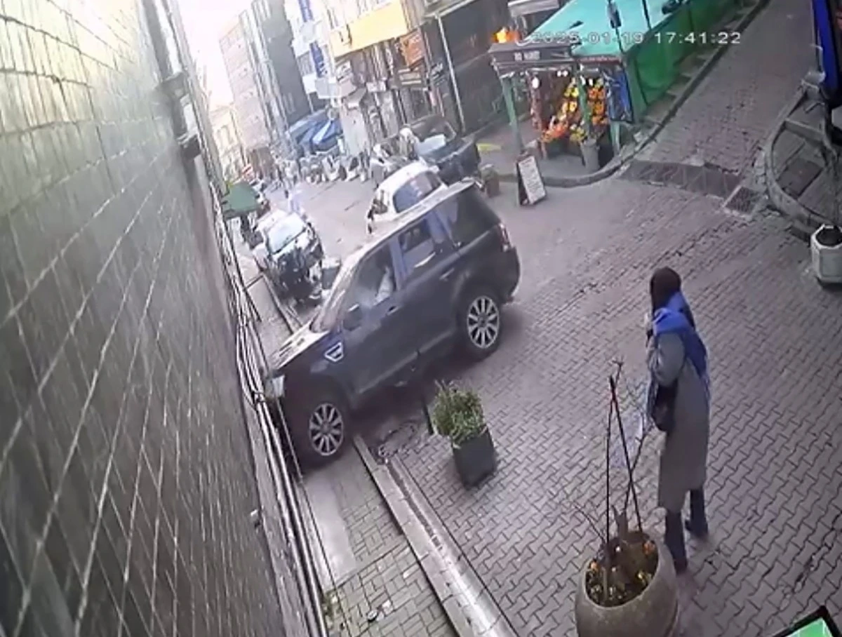 Beşiktaş’ta freninin tutmaması nedeniyle kontrolden çıkan lüks cip, bodrum kattaki bir evin önündeki taş saksıya ardından demir korkuluklara çarparak durdu. Kazada kadın sürücü şoka girerken, arka koltukta bulunan 3 çocuk ise büyük korku yaşadı. Boynunun incindiği öğrenilen kadın hastaneye kaldırılırken, kaza anı ise güvenlik kamerasına yansıdı. Geçtiğimiz yıl aynı apartmana 3 kez araç çarparken, bodrum kattaki dairenin duvarı da hasar görmüştü.