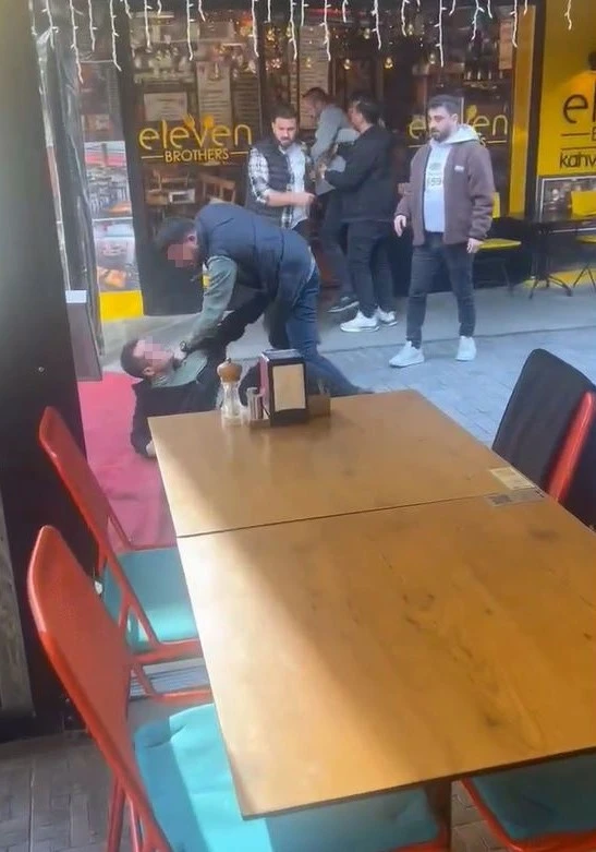 Olay, Beşiktaş’ta öğle saatlerinde bir kafede meydana geldi. Ters yönden geldiği iddia edilen bir otomobil sürücüsü, moto kuryeye korna çaldı. Bunun üzerine kurye araç sürücüsüne "Ters yöndesin abi, sen geç" dedi. Duruma öfkelenen araç sürücüsü, kuryeye küfür ve hakaretler savurdu. Kuryenin de sürücüye karşılık vermesiyle tartışma kavgaya dönüştü. Yumrukların havada uçuştuğu kavga, çevredeki vatandaşların cep telefonu kamerasına anbean yansıdı.