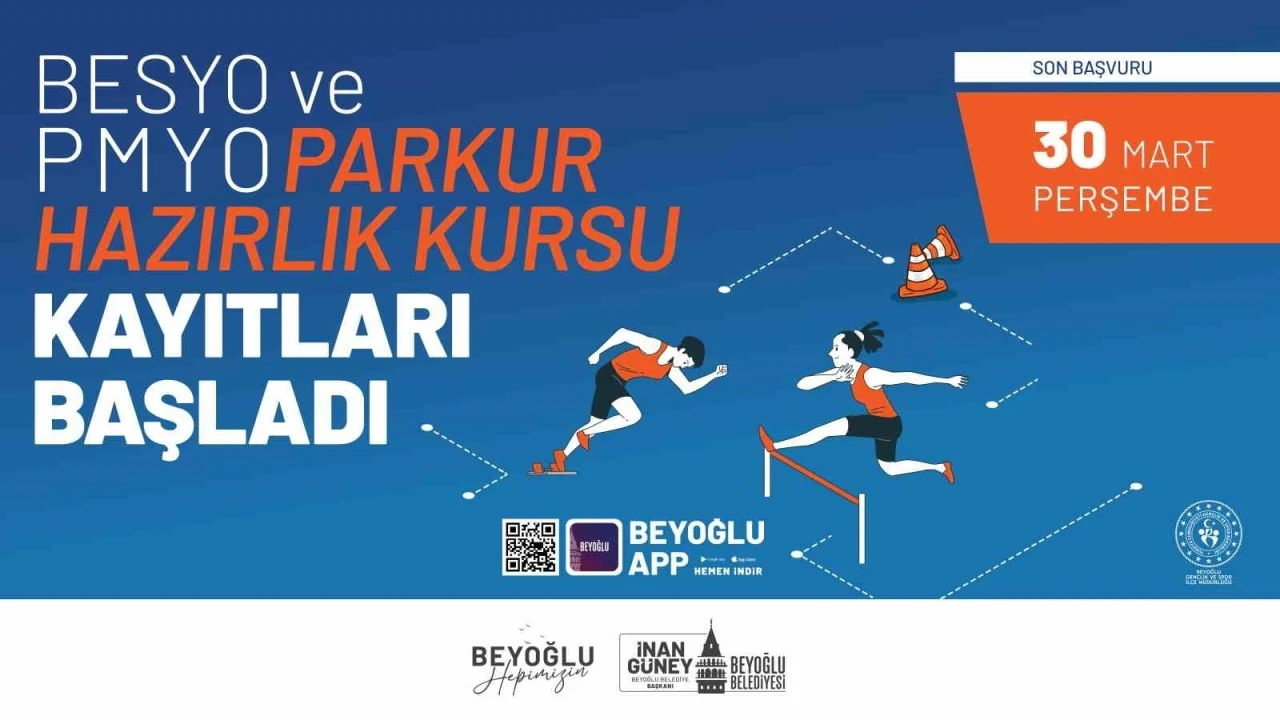 15 Nisan’da başlayacak olan PMYO Parkur ve BESYO hazırlık kursu dört ay sürecek. Toplamda ise her iki kurs için de 130’ar saat eğitim verilecek. Bu özel fırsattan yararlanmak isteyen gençler için son başvuru tarihi 30 Mart olarak belirlendi. Eğitimlere katılmak isteyen gençler BeyoğluApp uygulaması üzerinden ücretsiz olarak kayıtlarını yaptırabilecek.