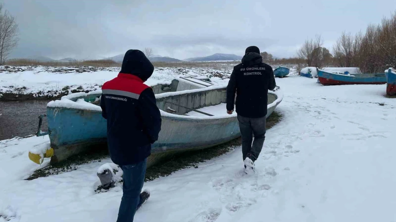 Konya’nın Beyşehir ilçesinde su ürünleri kontrol görevlilerinin denetimleri olumsuz hava şartlarına rağmen devam ediyor.