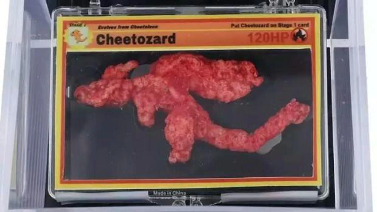 “Sunulan ürün, Pokemon Charizard şeklinde 7,6 cm uzunluğunda bir Flamin’ Hot Cheeto’dur. Özelleştirilmiş bir Pokemon kartına sabitlenmiş ve şeffaf bir kart saklama kutusunda muhafaza edilmiştir. İlk olarak 2018-2022 yılları arasında 1st & Goal Collectibles tarafından keşfedilip korunmuştur. 2024’ün sonlarında sosyal medya platformlarında büyük ilgi görmüştür.”