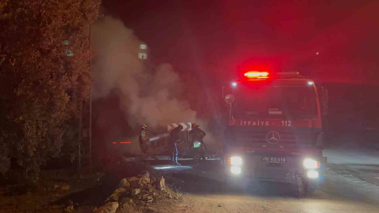 Bursa’nın İznik ilçesinde sürücüsünün kontrolünden çıkan son model otomobil yanarak küle döndü. Otomobil sürücüsü kazayı hafif sıyrıklarla atlattı.