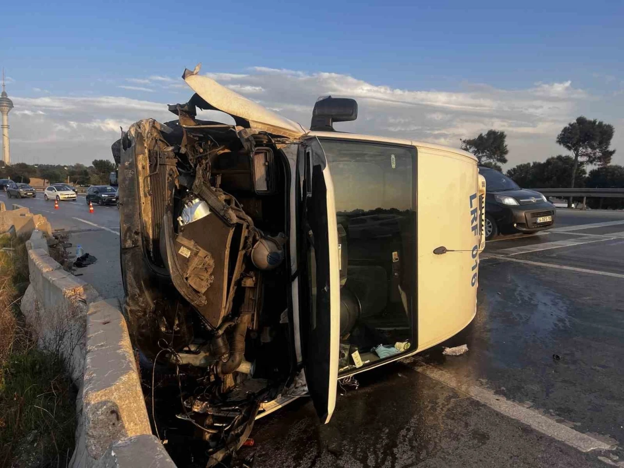 Büyükçekmece’de kontrolden çıkan boş servis minibüsü devrildi. Kaza nedeniyle yolda yoğun trafik oluştu.