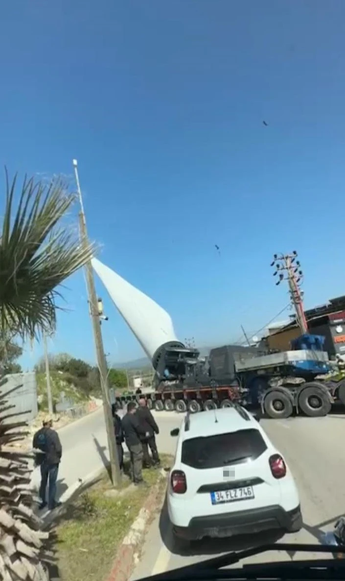 Çanakkale’de rüzgar gülü kanadı taşıyan tırın devrildiği, rüzgar gülü kanadının çevrede bulunan sandık fabrikasının ve bir damın üzerine devrilerek hasar oluşturduğu kaza anları, bir vatandaşın cep telefonu kamerasına yansıdı.