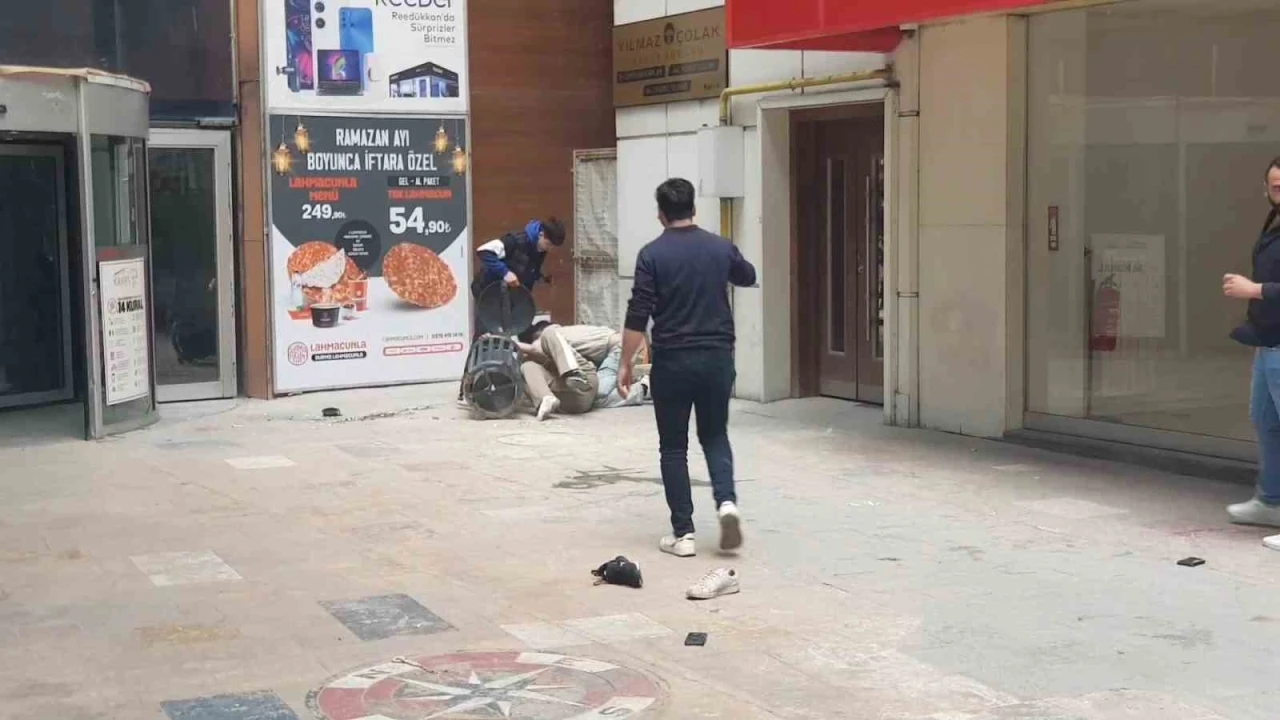 Öte yandan, alışveriş merkezinin girişinde yaşanan kavga anı cep telefonu kamerasına yansıdı.