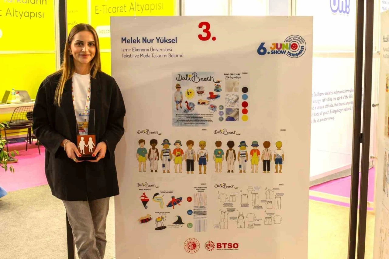 İzmir Ekonomi Üniversitesi (İEÜ) Tekstil ve Moda Tasarımı Bölümü öğrencisi Melek Nur Yüksel, 3-4 yaş aralığındaki erkek çocuklar için tasarladığı özel koleksiyonla Junioshow Bebek ve Çocuk Giyim Genç Tasarımcılar Yarışması’nda üçüncü oldu. Ünlü ressam Salvador Dali’den esinlenerek hazırladığı ‘Dali Beach’ adlı koleksiyonuyla dereceye girerek 15 bin TL’lik ödülün sahibi olan Yüksel, yurt dışı eğitim bursuna başvuru hakkını da elde etti.