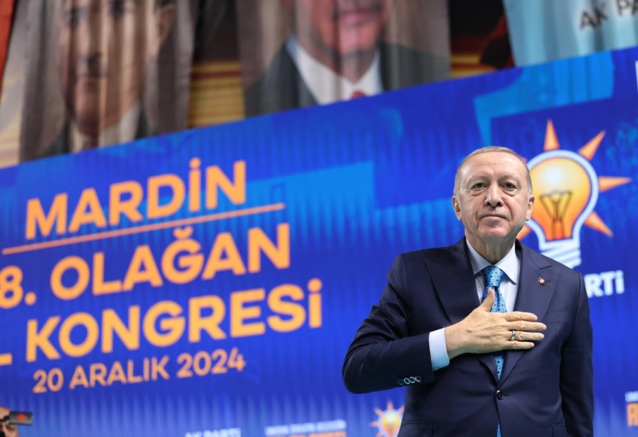 Artuklu Kapalı Spor Salonunda AK Parti Mardin 8. Olağan İl Kongresine katılan Cumhurbaşkanı Recep Tayyip Erdoğan, Suriye konusu ve teröre bulaştıkları için kayyum atanan belediyelere değindi. Erdooğan, konuşmasına Mardin’in tarihi ve kültürü ile başladı. Erdoğan, "Medeniyetimizin anıt şehri, müze şehri, gönül şehri Mardin’de bulunmaktan büyük bir memnuniyet duyuyorum. Rabbim Mardin ile birlikte Mardinli kardeşlerimizin de yolunu açık etsin. Tam bir muhabbet ikliminde gerçekleştirdiğimiz il kongremizin hayırlı olmasını diliyorum. Görevi devreden arkadaşlarımıza hizmetlerinden dolayı teşekkür ediyorum. Mardin teşkilatımızın her bir neferinden büyük hizmet bekliyoruz. Burada şunu söylemek istiyorum Mardin asla sıradan bir şehir değildir. Mardin Türkiye’nin özüdür. Mardin’in bir mahallesi Bursa ise bir mahallesi Adana’dır. Bir mahallesi Saraybosnaysa diğeri Halep’tir, Hama’dır, Humus’tur. Bir nakışı Abbasi ise diğer nakışı Selçuklu’dur, bir nakışı Artuklu ise diğer nakışı Osmanlı’dır. Mardin her köşesi tarihten asırlık bir hatırayı taşıyan medeniyetler beşiğidir. Mardin ile aramızın bozulmasına izin vermeyiz kimse boşuna heves etmesin. Mardin’e namahrem ellerin uzanmasına göz yummayız. Mardin üzerinde farklı hesap yapanlar dün olduğu gibi yarın da hüsrana uğrayacaktır. Bu şehir sinesinde yüzlerce yıldır barış içinde yaşattığı farklı inançlarla tüm dünyaya hoşgörü dersi vermektedir. Mardin birliğin dayanışmanın huzurun şehri olmaya devam edecektir. Kıymetli yol ve dava arkadaşlarım bundan yıllar önce uzun ince bir yola çıktık. Gayemiz milletin hayallerini yeşertmek içindir. Her şey milletimiz içindir. Bizimle aynı yöne bakan bu yolu bizimle omuz omuza yol yürümek isteyenlere kapımızı açtık. Bütün ayrımları elimizin tersiyle ittik. Siyasi rakiplerimizin uzlaşmaz tavırlarına rağmen biz daima yapıcı olmaya gayret ettik laf üretmek yerine iş üretmeye çalıştık. Milletimize eserlerimizi hizmetlerimizi yatırımlarımızı anlatmaya çalıştık. Bizden daha çok icraatlarımız konuşsun istedik. Eserlerimiz projelerimiz anlatılsın istedik" diye konuştu.