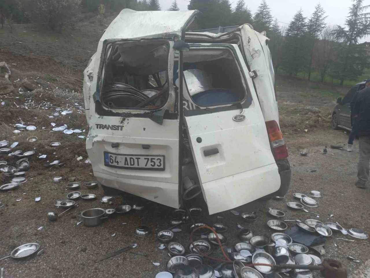 Afyonkarahisar’da kontrolden çıkarak refüje girip ardından devrilen minibüste 3 kişiyi yaralandı.
