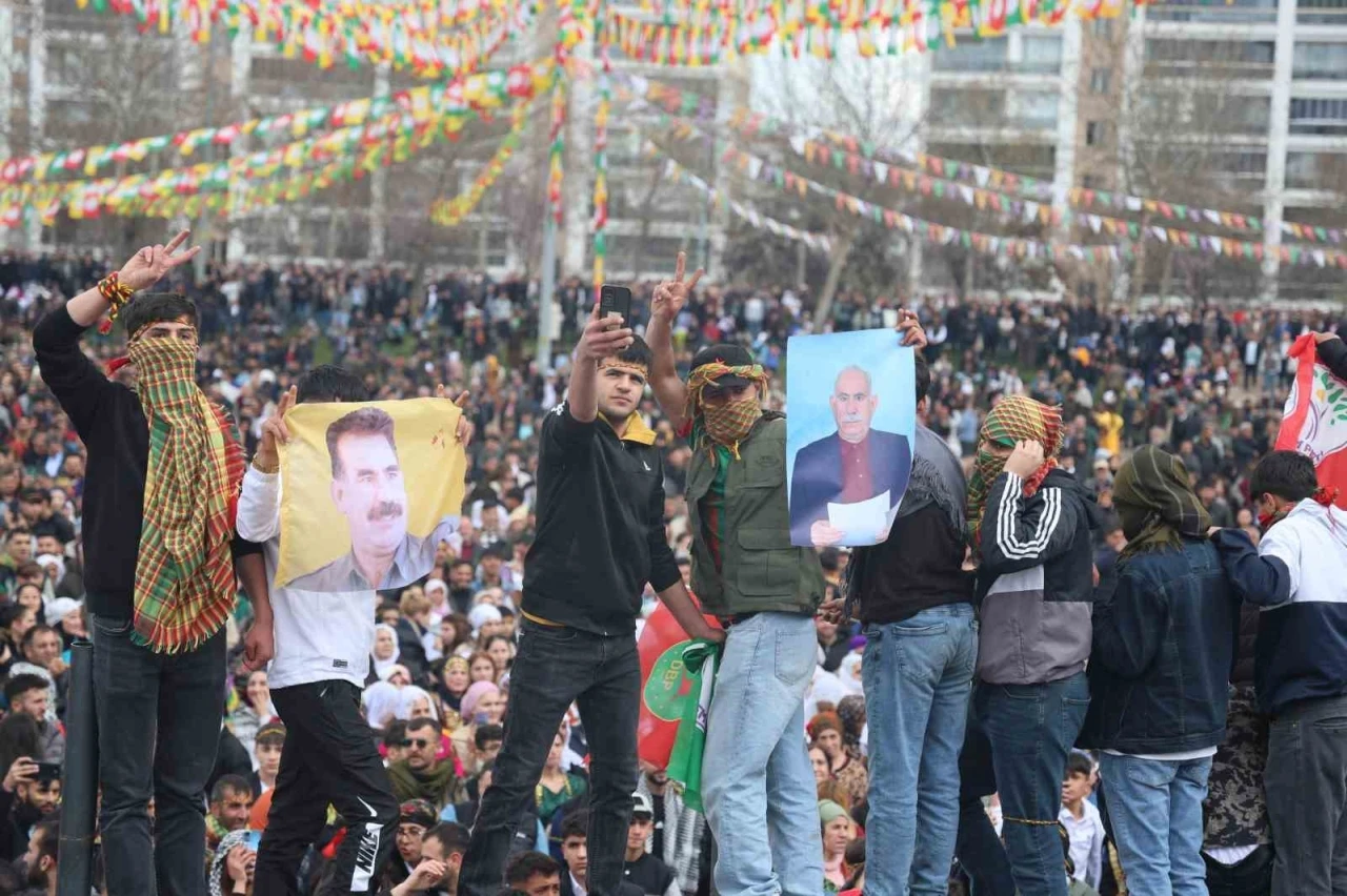 Öte yandan, kutlamaların yapıldığı alanda teröristbaşı Abdullah Öcalan sloganları atılıp posterleri açıldı.