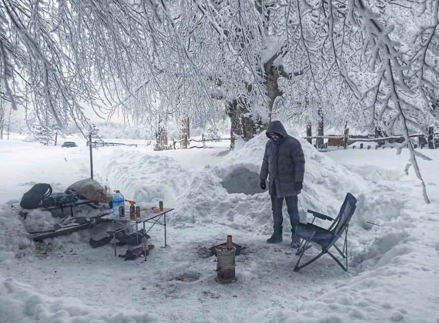 Fotoğraf tutkunu ve doğa sporları ile uğraşan Yasin Yavuz ve Mustafa Özyurt, Kütahya-Bursa il sınırında yer alan 1500 metre rakımlı Domaniç Dağı Topuk Yaylası mevkiinde kamp kurdu. Birkaç gün süren yoğun kar yağışının ardından tamamen beyaza bürünen Domaniç Dağları’nda, iki arkadaş unutulmaz bir deneyim yaşadı. Yaklaşık 2 metre kar kalınlığının olduğu bölgede, eskimoların geleneksel evi olan igloyu inşa eden kampçılar, hem doğa ile iç içe vakit geçirdi hem de farklı bir deneyim yaşadı.