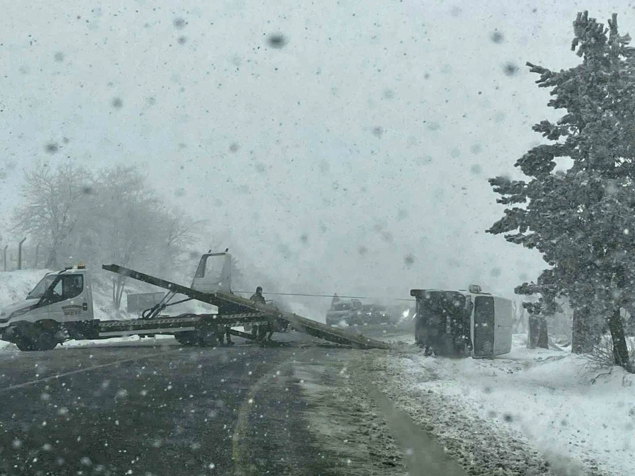 Kar yağışının etkili olduğu Domaniç-İnegöl yolu Kocayayla Orman Deposu yakınlarında bir ticari araç, sürücüsünün kontrolünü kaybetmesi sonucu devrildi. Kazanın ardından olay yerine yönlendirilen ekipler, bölgedeki trafiğin güvenliğini sağladı.
