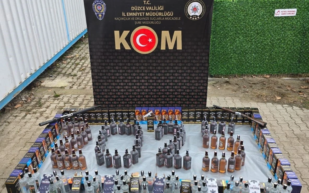 Düzce Cumhuriyet Başsavcılığı koordinesinde İl Emniyet Müdürlüğü Kaçakçılıkla Mücadele Şube Müdürlüğü ekipleri, iki farklı adrese operasyon düzenledi. Yapılan aramalarda, farklı marka ve miktarlarda 191 şişe yabancı menşeli kaçak içki, bir ruhsatsız tabanca ve iki ruhsatsız tüfek ele geçirildi.Olayla ilgili olarak M.K. (64) hakkında adli işlem başlatıldı. Şüpheli M.K.’nın daha önce 3 farklı suç kaydının bulunduğu öğrenildi.