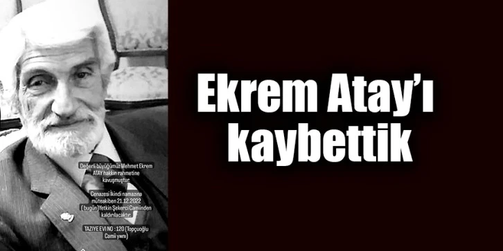 Asri mezarlıkta Yetkinşekerci Camisinde kılınan ikindi namazını müteakiben toprağa verilen Ekrem Atay’ın taziyesinin Topçuoğlu camisi yanındaki 120 nolu taziye evinde yapılacağı açıklandı. Kent haber27 olarak Ekrem Atay’a Allah’tan rahmet, yakınlarına sabır ve başsağlığı dileriz.Ekrem Atay’ı kaybettik