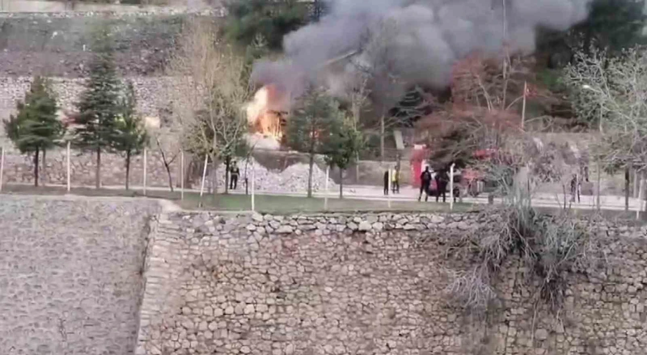Elazığ’ın Maden ilçesinde belediye binası yanında bulunan bir konteyner alev aldı. Olay yerine gelen itfaiye aracında yaşanan arıza nedeniyle yangına zamanında müdahale edilemeyince konteynerın küle döndüğü iddia edildi.