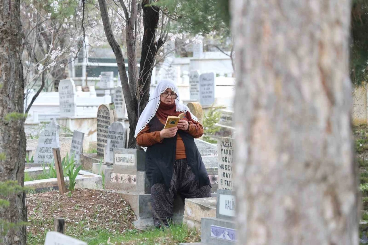 Elazığ’da vatandaşlar, Ramazan Bayramı öncesinde hayatını kaybeden yakınlarını anmak için Asri Mezarlığına akın etti.