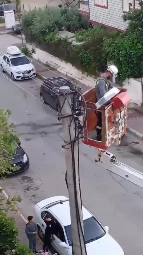 Kuzeyyaka Mahallesi’nde meydana gelen olayda bir kumrunun elektrik tellerine takıldığını ve çaresizce çırpındığını gören vatandaşlar AEDAŞ ekiplerini arayarak yardım istedi. Vatandaşların ihbarı ile belirtilen adrese gelen AEDAŞ ekipleri vinç yardımıyla kumrunun takıldığı elektrik direğine ulaştı. Gerekli güvenlik önlemlerini alan çalışan ayağından tellere dolanan kumruyu bulunduğu yerden kurtardı. Ardından kumrunun durumu kontrol eden görevli vincin aşağıya inmesinin ardından kumruyu bırakarak doğal yaşamına dönmesini sağladı.
