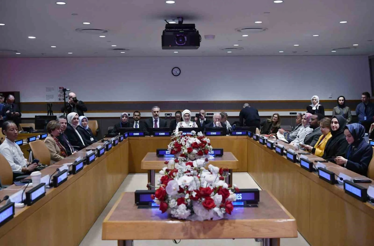 Panelin arından Emine Erdoğan, beraberindekilerle birlikte BM binası Delege girişi katında bulunan Yankılar Sergisi’ni gezerek, sergi hakkında detaylı bilgi aldı ve misafirlerle birlikte fotoğraf çektirdi.