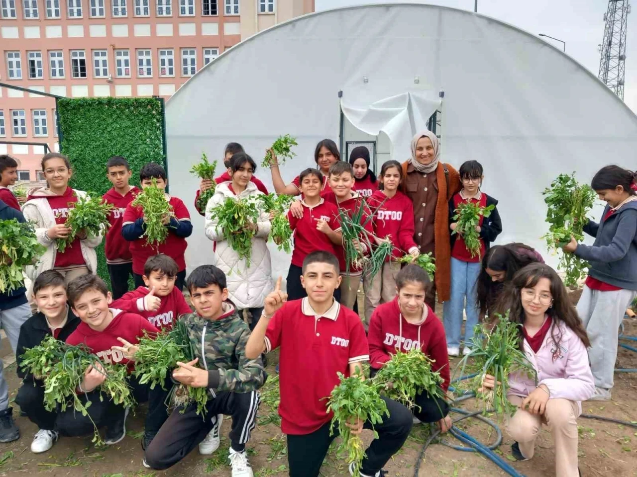 Türkiye genelinde 28 ilde uygulanan proje kapsamında Okuldaki Çiftlik uygulamasına katılan öğrenciler, okullarında bulunan serada kış döneminde maydanoz, roka, taze soğan gibi yeşillikler yetiştirmeyi başardılar.