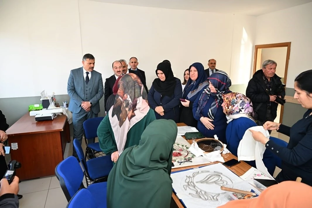 Erzurum Valisi Mustafa Çiftçi’de, Oltu ziyaretleri kapsamında Aile Destek Merkezi’ni (ADEM) ziyaret etti. Kadınların meslek edinerek üretime katılmalarını destekleyen Oltu ADEM, sosyal dayanışmanın ve istihdama katkının güzel bir örneğini oluşturuyor. 20-60 yaş aralığındaki kadınlara mesleki eğitim ve beceri kazandırmayı amaçlayan Oltu ADEM’de devam eden kurslar ve kursiyer sayıları şu şekilde; Kadın Etek Dikimi Kursu - 17 kursiyer, Kadın Üst Giysileri Dikimi Kursu - 17 kursiyer, Ahşap Boyama Kursu - 15 kursiyer, Oyun Odası Kursu - 12 kursiyer, Oyuncak Yapımı Kursu - 12 kursiyer, Nakış Kursu - 18 kursiyer, Özgün Baskı Kursu - 13 kursiyer, Takı Tasarımcısı & Oltu Taşı İşlemeciliği Kursu - 12 kursiyer ve Filografi Kursu - 17 kursiyer olmak üzere toplam kursiyer sayısı 133