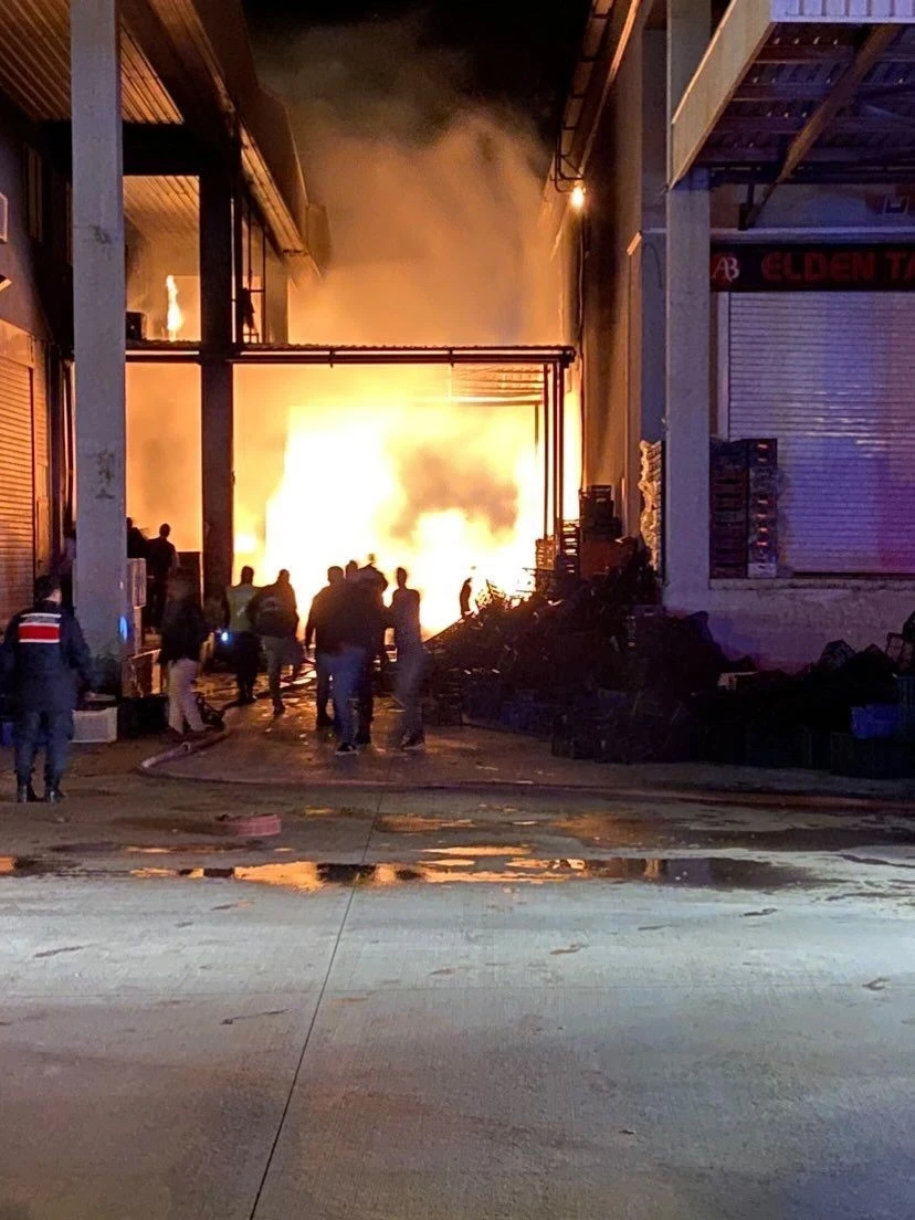 Antalya’nın Finike ilçesinde toptancı halinde çıkan yangın paniğe neden oldu.