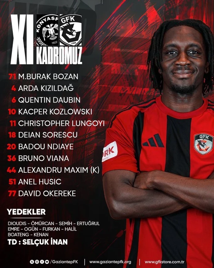 Teknik Direktör Selçuk İnan yönetiminde hazırlıklarını tamamlayan Gaziantep FK, deplasmandan puan veya puanlarla dönmeyi hedefliyor. Kritik mücadele, hem alt sıralardaki dengeleri hem de Gaziantep temsilcisinin ligdeki konumunu yakından etkileyecek
