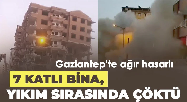 Gaziantep'te ağır hasarlı 7 katlı bina, yıkım sırasında çöktü