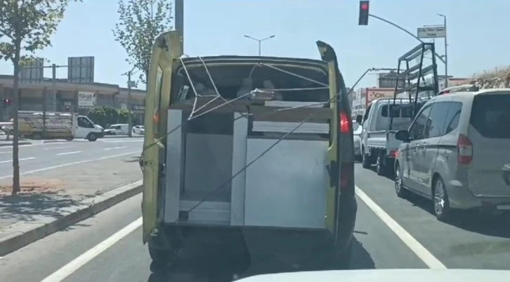 Yoğun trafikte aracın tehlikeli yolculuğu cep telefonu kamerasına yansıdı. Araç kırmızı ışıkta beklerken kaydedilen görüntüler pes dedirtti.